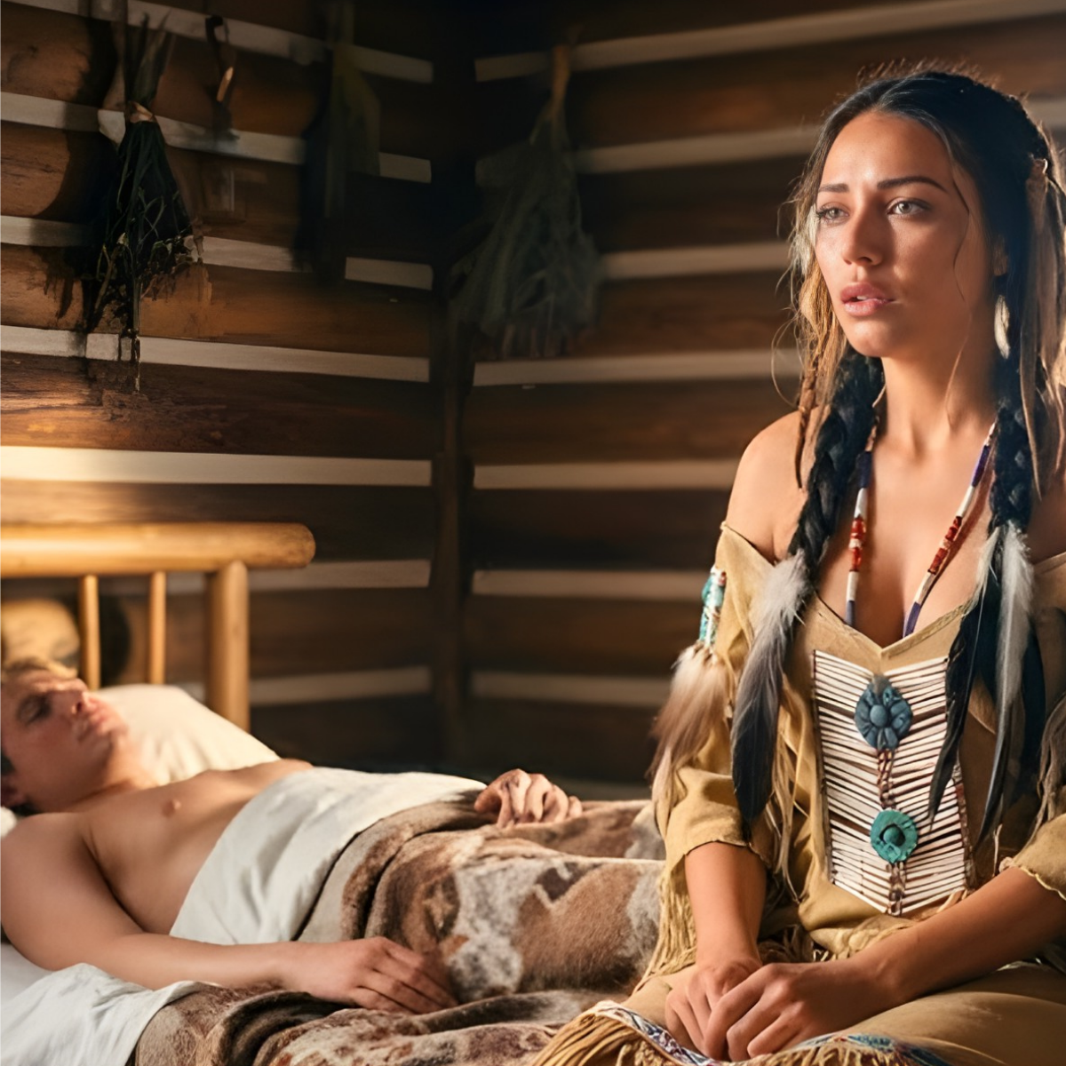 Ta’kana’s breath caught, her fingers curling around the blanket, terror rising like a tide that threatened to swallow her whole, but Gideon stepped forward, placing a warm, steadying hand on the wooden post of the bed — close enough for her to feel the weight of his promise, but far enough not to scare her.
